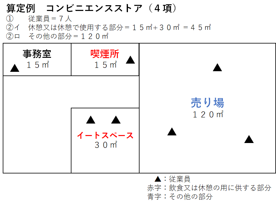 イ 飲食又は休憩の用に供する部分については、当該部分の床面積を3㎡で除して得た数